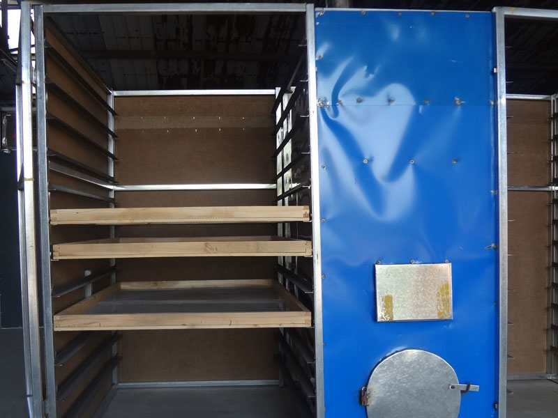 2、 使用時(shí)正確操作方法:將烘干物料均勻的擺放在篩網(wǎng)上,按順序依次裝入箱休內(nèi),關(guān)好箱門,暢幵左右頂蓋(如果物品水分相對(duì)較小,也可以用裝箱紙板將頂部蓋起),開啟風(fēng)機(jī),然后將煙煤塊或木柴放入爐膛中點(diǎn)燃進(jìn)行加熱,開始火力不宜過大,應(yīng)慢火加溫。隨著烘干物品水分的蒸發(fā),烘干過程過幾小時(shí)后,在慢慢加大火力。(具休根據(jù)物品烘干工藝進(jìn)行靈活操作)