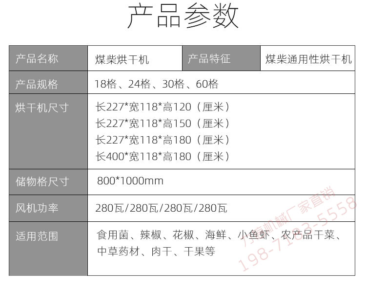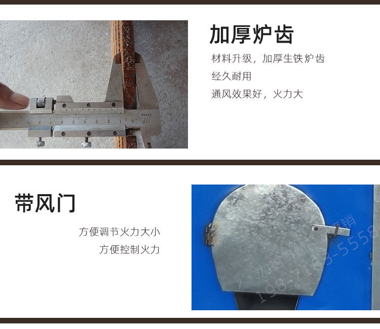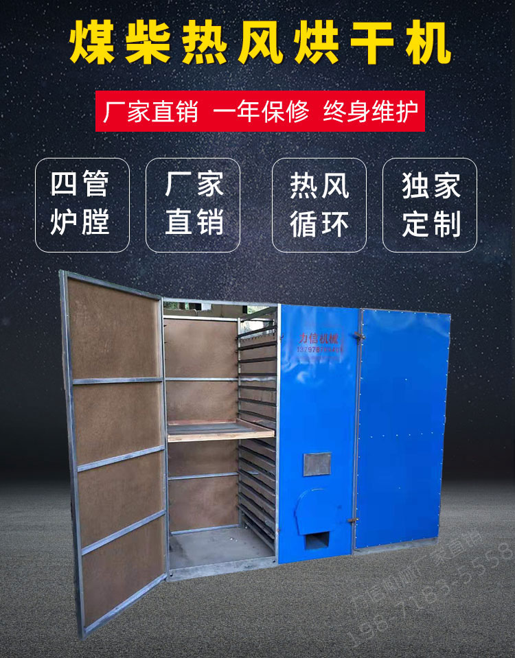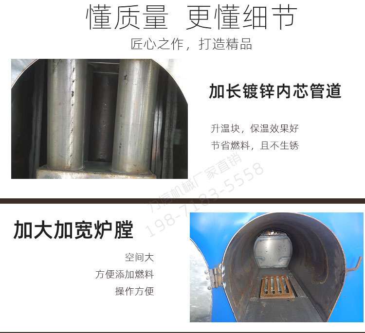 機(jī)芯采用4散熱鍍鋅管道,功能更強(qiáng)大!用柴或煤作為熱源。柴或煤并不直接加熱,而是由機(jī)芯內(nèi)部的散熱管道散熱。由強(qiáng)勁的風(fēng)扇使熱風(fēng)由機(jī)芯到烘箱循環(huán)加熱。產(chǎn)生源源不斷的熱風(fēng)。(烘干過(guò)程中為輕煙烘干,解決了普通柴煤烘干機(jī)污染產(chǎn)品的現(xiàn)象)