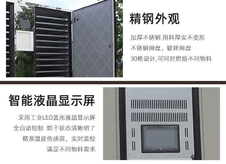 力信機(jī)械此款智能環(huán)保30格烘干機(jī)通過(guò)7寸觸摸屏可設(shè)置濕度、溫度、烘干時(shí)間。內(nèi)部采用耐高溫高濕的風(fēng)機(jī),使熱風(fēng)在烘干箱內(nèi)進(jìn)行循環(huán),有多個(gè)出風(fēng)口,強(qiáng)大的風(fēng)量以及360度左右循環(huán)風(fēng)路讓烘干箱各個(gè)地方溫度均勻,物料烘干過(guò)程是不需要上下翻動(dòng)篩網(wǎng)。提高物料烘干效率;